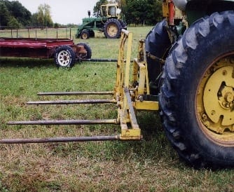 This bale fork is on my first prototype. I have four spears, so I can have stacks made from stackers like you see in the western, U.S.A.