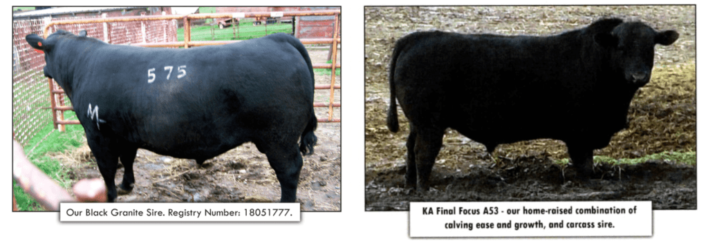 Breeding stock for sale at all times. Raised without creep feed or growth stimulants. Currently for sale cows bred to the Mainstream sire and coming yearling heifers and bulls by Mainstream. Our goals have been to have 6.5% of the dams weight at birth and 50% of the dams weight at weaning. So a 1000 lb heifer can give birth to a 65 lb calf and a 1500 lb cow can have a 95 calf without any trouble.